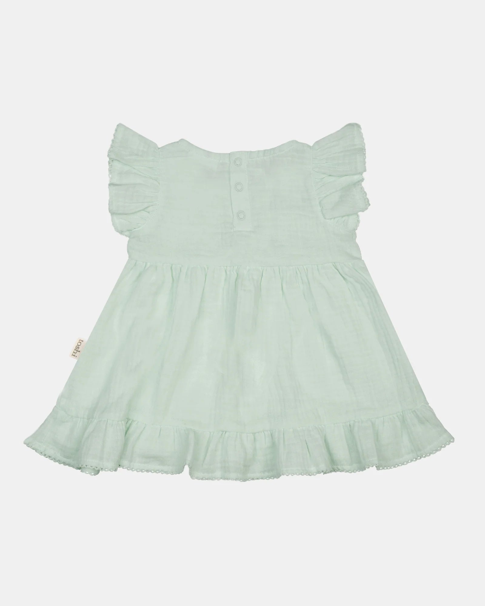 Toshi Baby Dress Sammy is crafted from the finest quality certified 100% organic cotton yarn. The cheesecloth fabrication features a supremely soft and gently nurturing texture. The classic colours create wardrobe staples, and are ideal for layering and transeasonal styling. The A-line shape is flattering and comfortable, with space for freedom of movement. Feature frill creates a playful and charming touch. The dress has back press studs for convenient dressing. The beautiful Toshi Baby Dress transitions effortlessly from casual occasions to special celebrations.
