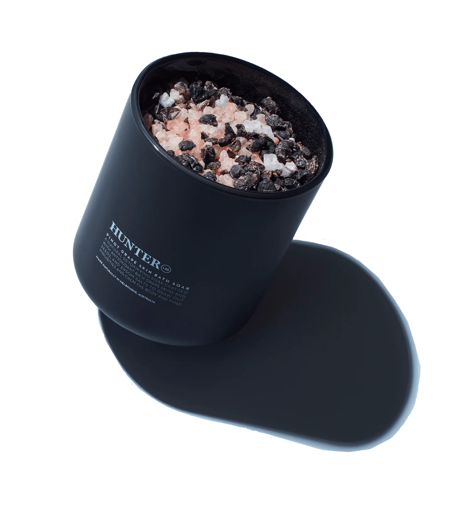 A natural detoxifying vinotheraphy bath salt soak crafted with antioxidant rich grape skins and seeds and cranberry extract to nourish skin, and Epsom and Rock salts to relax muscles, increase blood circulation, help draw out impurities and calm body and mind