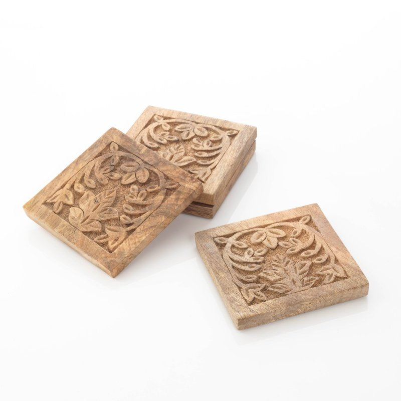 Handcrafted from mango wood by skilled artisans, our Carved Timber Coaster Set will be a beautiful addition to style your dining or coffee table.