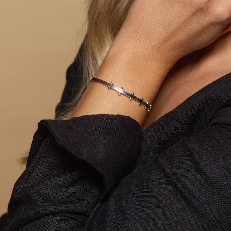 Worn solo or layered, our Amélie Cuff Bracelet is the perfect addition to your jewellery collection. Crafted in sterling silver, it features ball detail along the top and bottom edges.