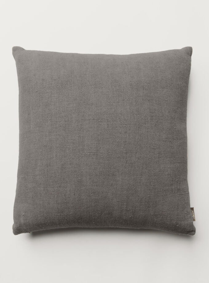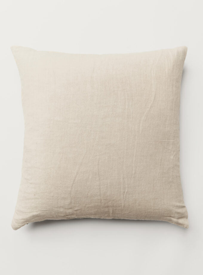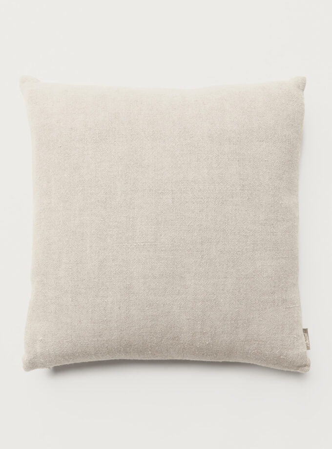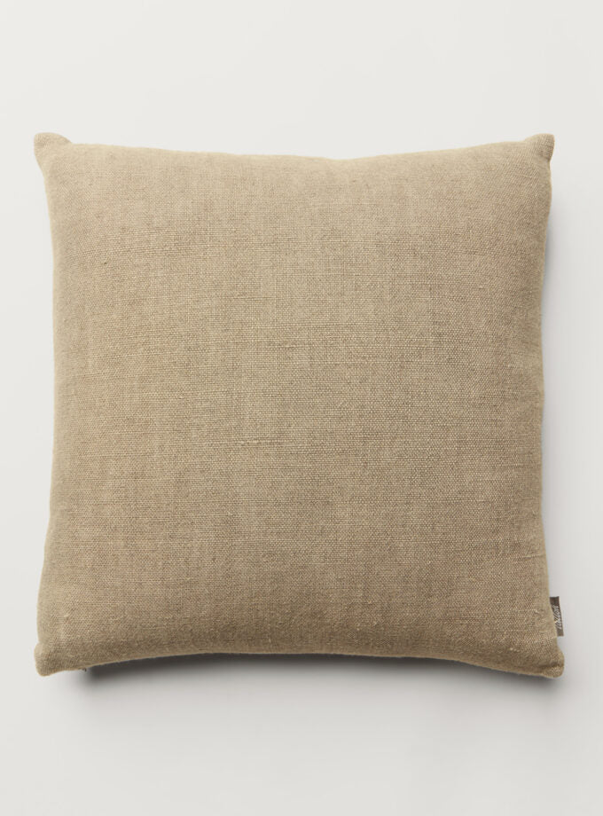 A slubby, heavyweight 100% linen cushion in sultry neutral and seasonal tones.