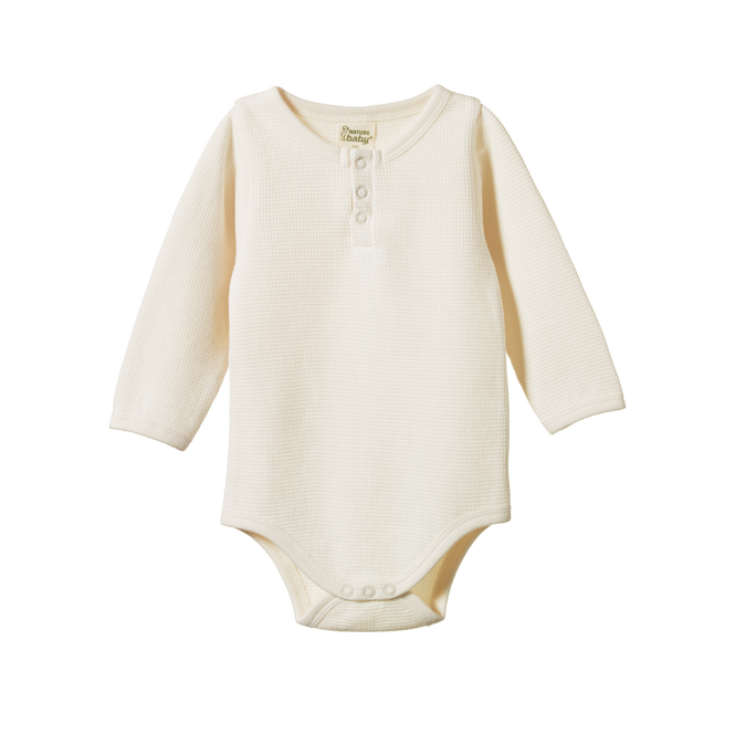 The long sleeve bodysuit is an essential layer for baby. This style is made from our softly textured waffle knit, making it soft and breathable during the warmer months. Easy snap domes ensure baby's tummy and back are covered and make for quick nappy changes. A placket at the chest helps with easy dressing.