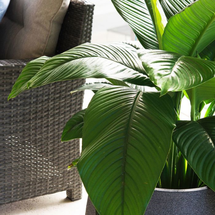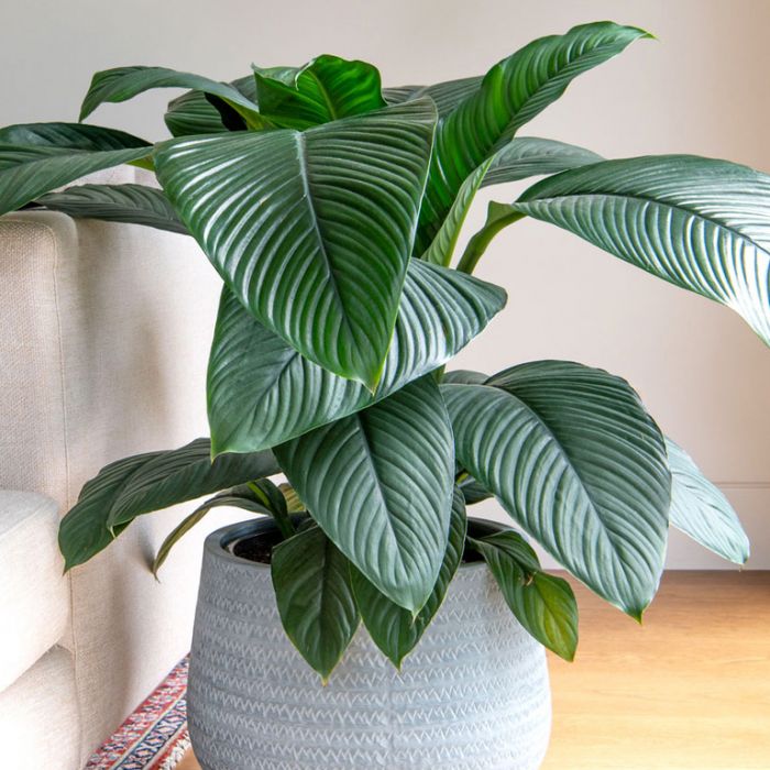 Peace Lilies have always created a sensation at home and are a favourite indoor plant. Of all lily varieties this plant is thought of as the world's best. Famous for its large, dark green ribbed leaves and large white flowers with a yellow spadix. It has a strong, upright habit that grows to one metre with striking stems that look fabulous in a pot or tall vase when cut.