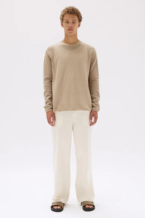The perfect layer piece for your summer staples. This style features a ribbed crew neck collar, hem and cuffs to allow the knit to keep its shape.