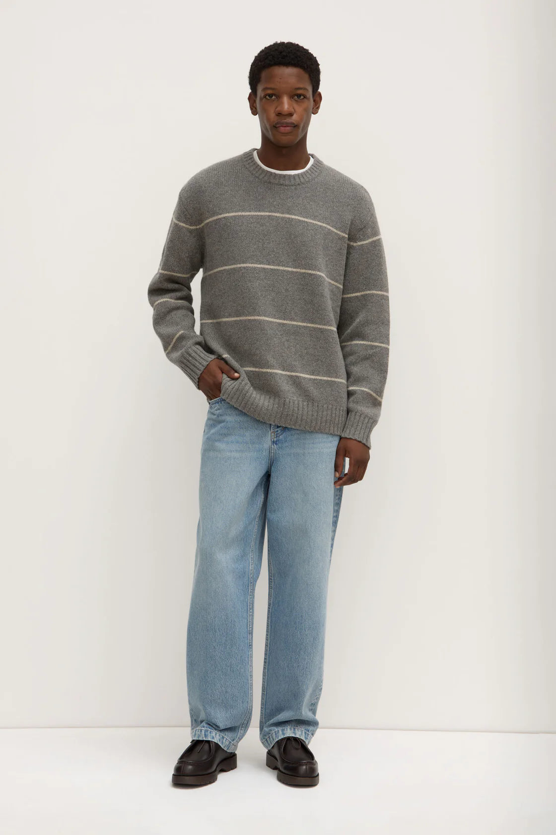 Cut in a relaxed crew neck silhouette, this knit is crafted from extra-fine merino wool and features a contrast stripe design.