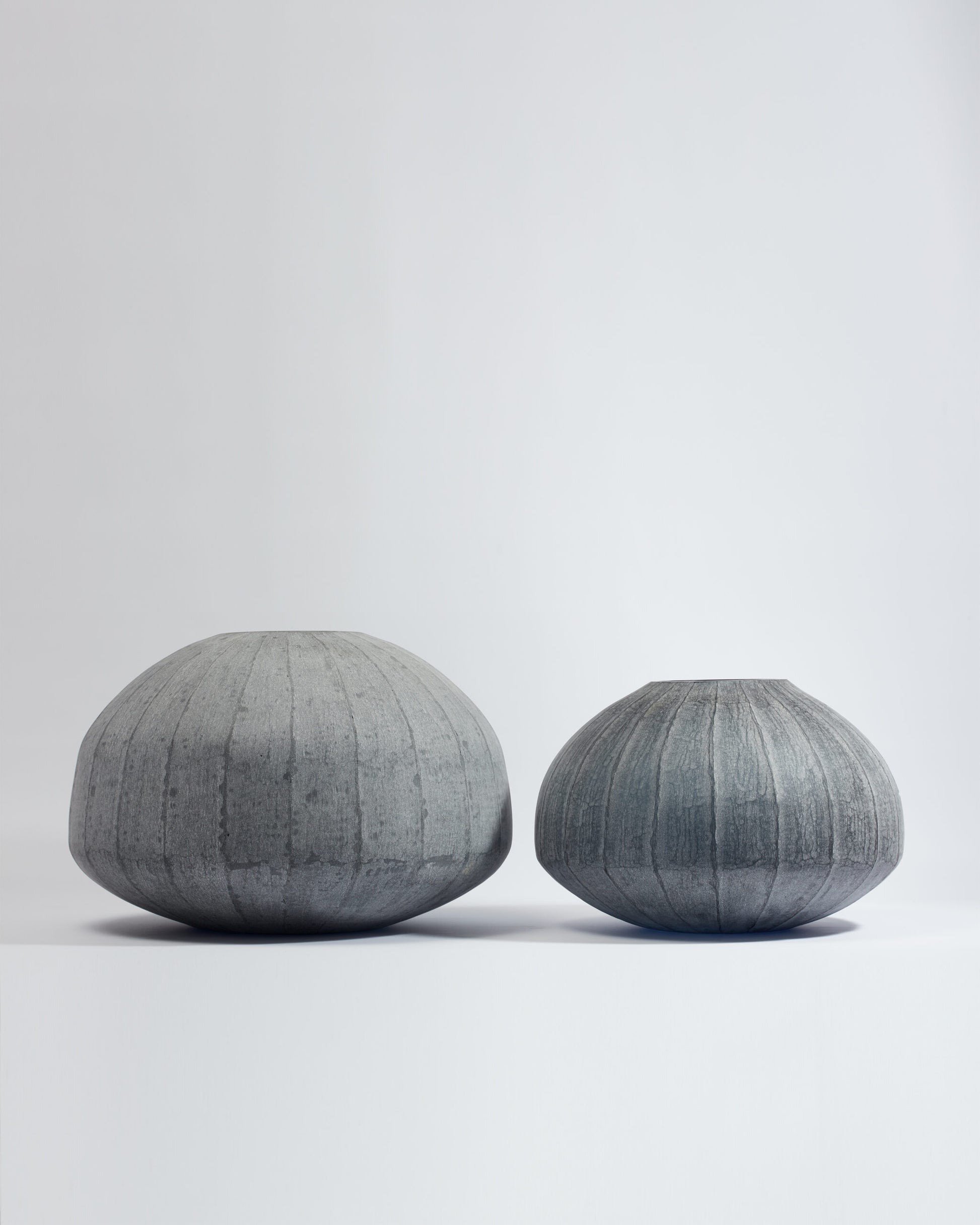 Stone ground in frosted smoke for a juxtaposition of form and finish.