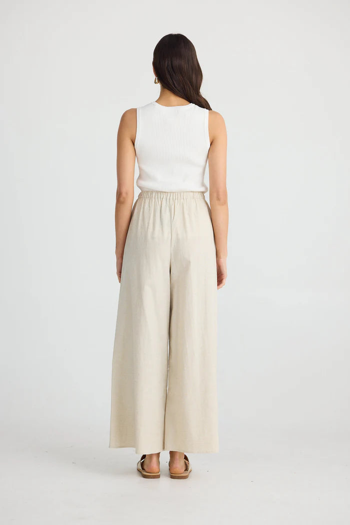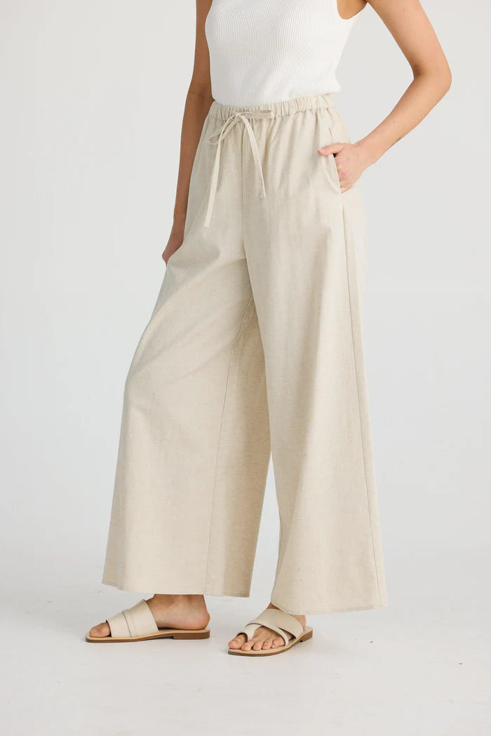 Crafted for comfort and style, the Lana Linen Pant from Brave and True is an essential piece for your wardrobe all year long. Boasting a relaxed fit, these full length, mid-rise pants feature a stretchy drawstring elasticated waistband and convenient in-seam side pockets. They offer breathability, durability, and softness. Whether for work, brunch, or a day out, pair them with your favorite top for an effortless and chic look.