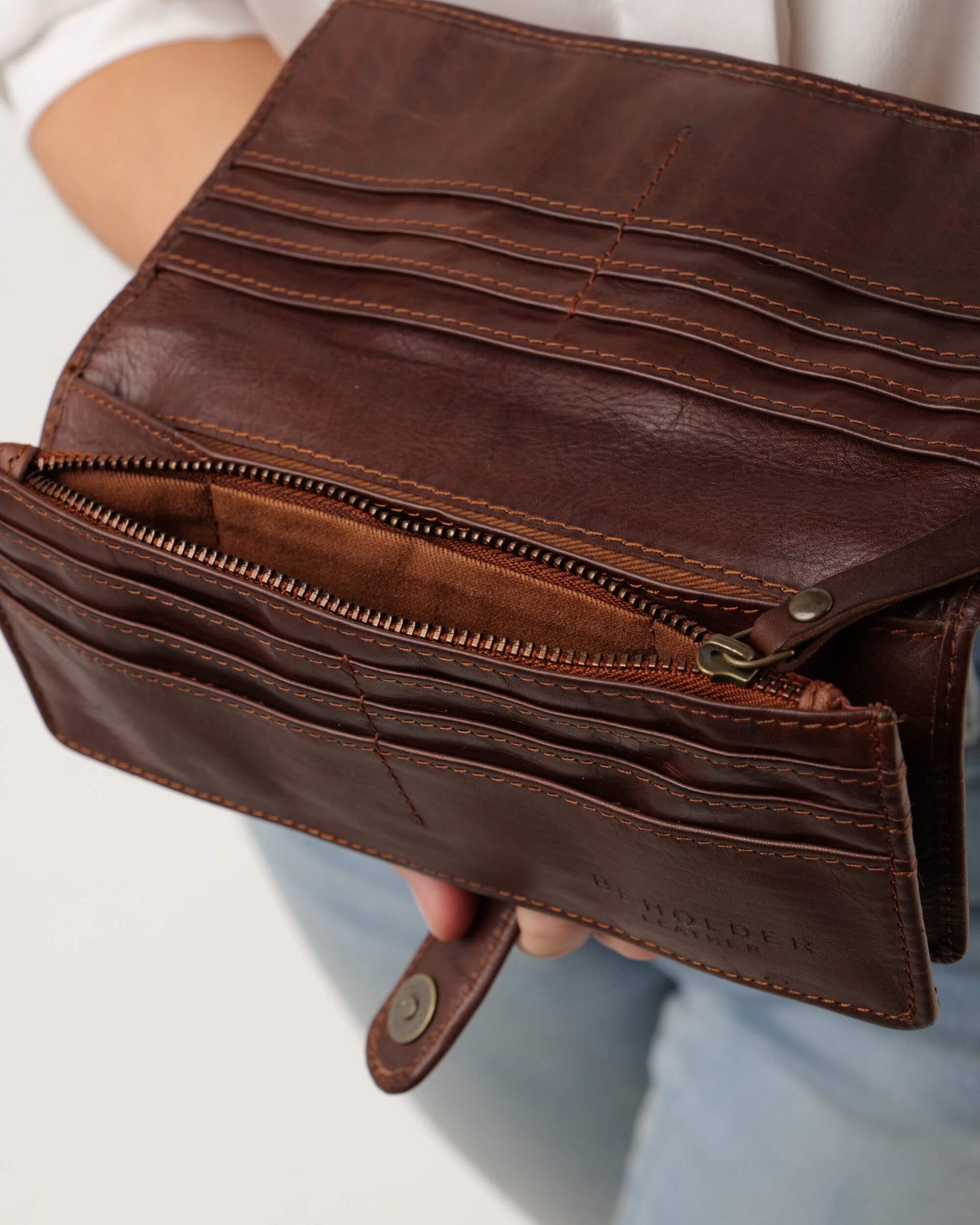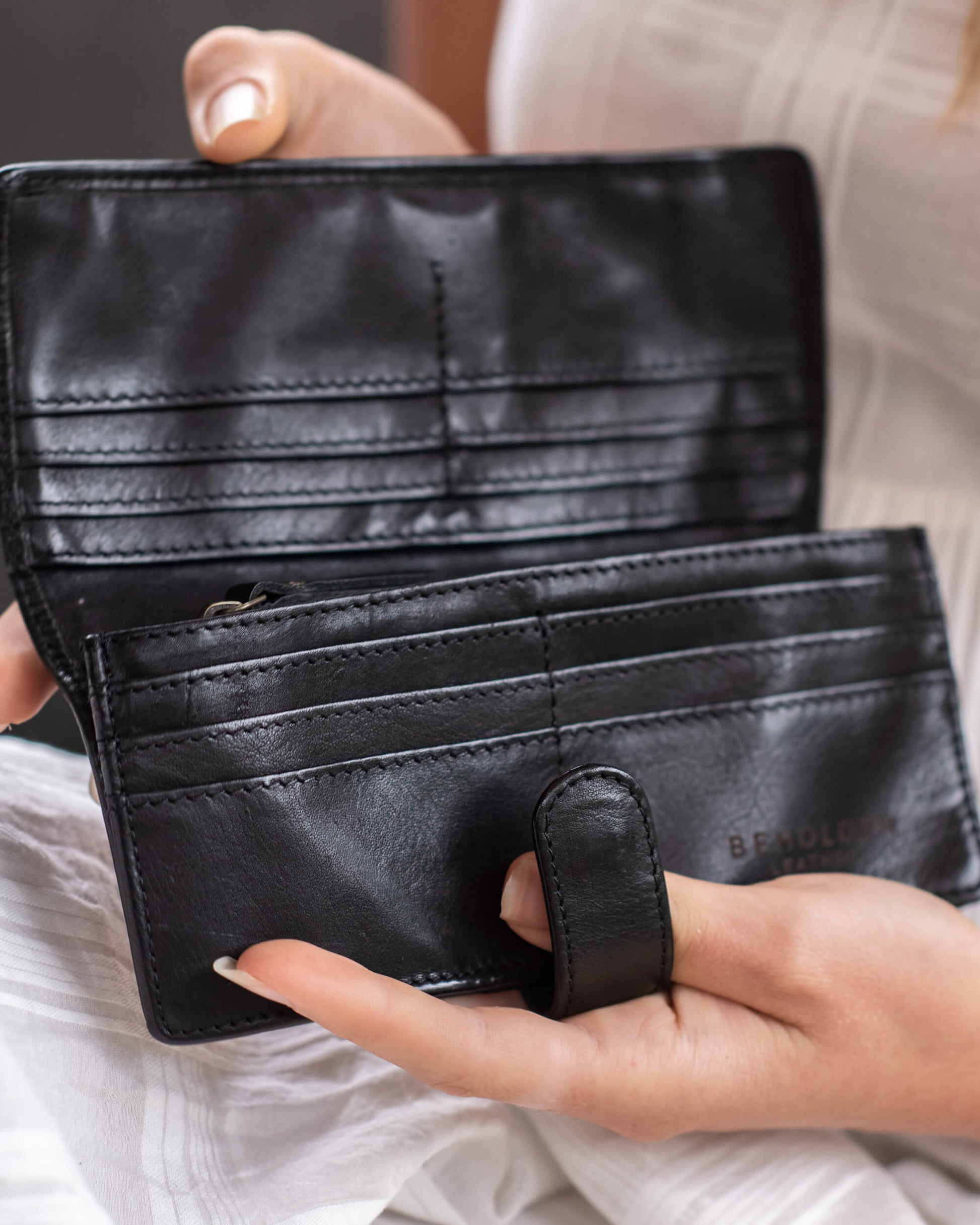 An age old winner, Mishka will serve all your needs and mature with age like a fine wine. She has 12 card slots, 3 places to hold your cash and a zip pocket for your treasures. All wrapped up with a snap lock clip.