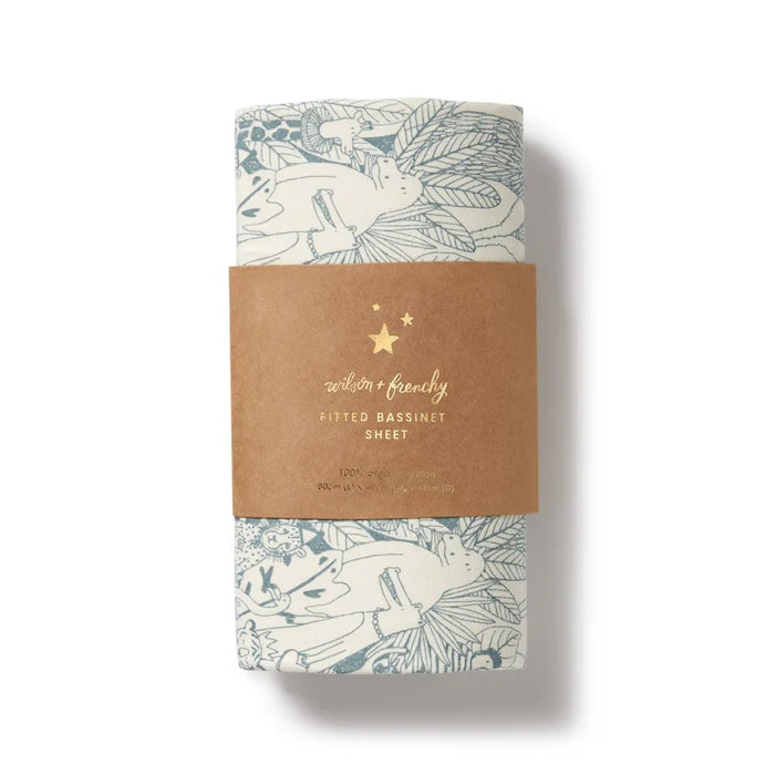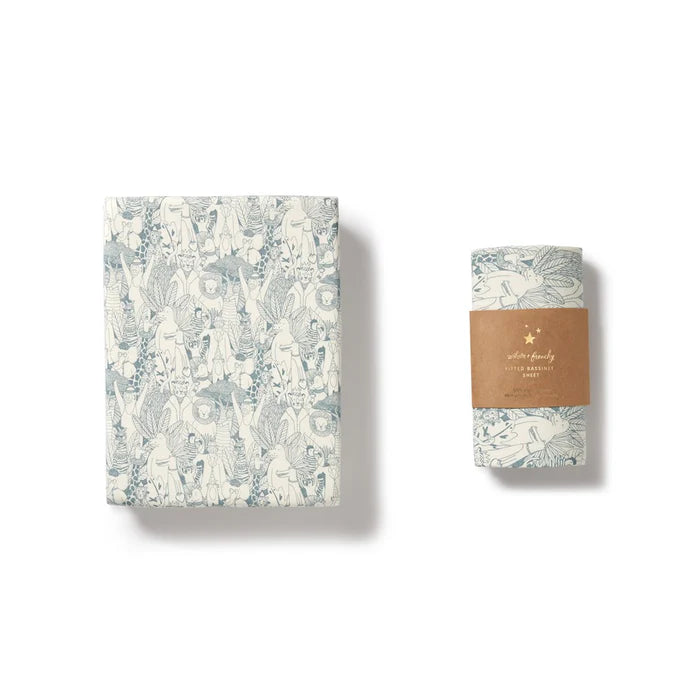 This organic bassinet fitted sheet is made to fit Australian standard size bassinets and Boori bassinets. This super-soft, breathable and eco-friendly bassinet sheet features a gorgeous hand-illustrated all over print. Pair back with a matching bunny rug or organic zip suit for the perfect gift.