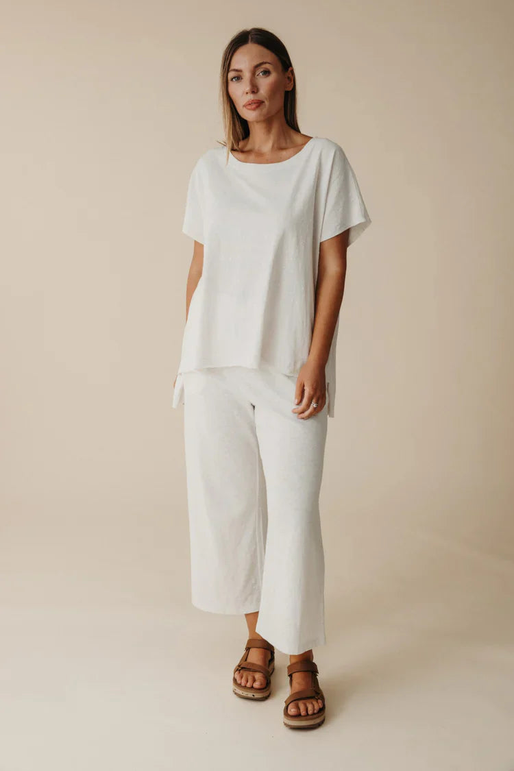Shoreline Flow - We guarentee this will be your new favourite tee. Relaxed, clean and a dream to wear. Our tee is true to brand with a high low hem. The simpliest silhouette yet so much better than a basic. Organic Cotton slub, soft, breezy