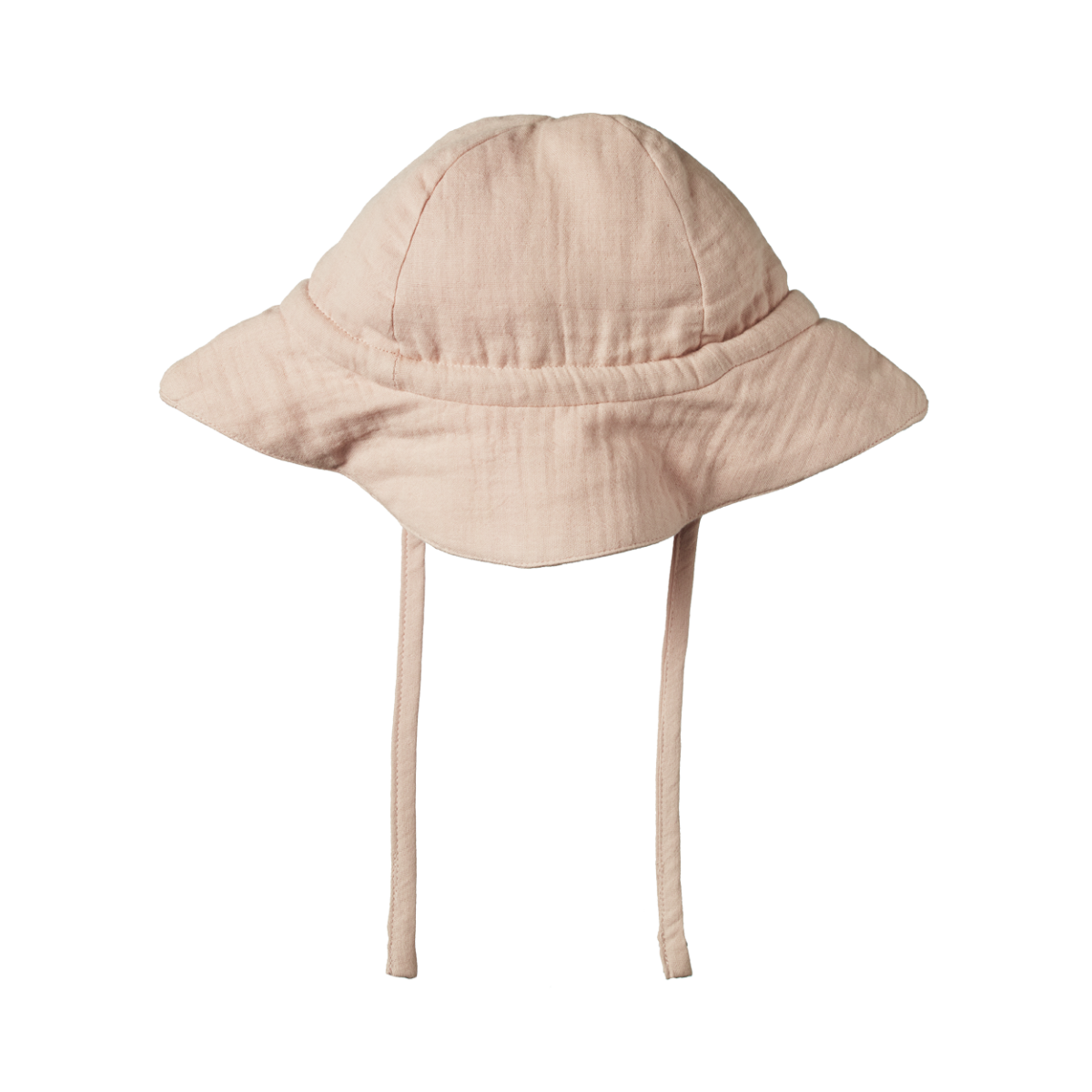 Keep baby's delicate skin safe from the sun with our GOTS certified Crinkle Muslin Sunhat. Features a protective wide brim, and a drawstring tie through the hat for an adjustable fit. Ties under the chin keep hat comfortably in place.