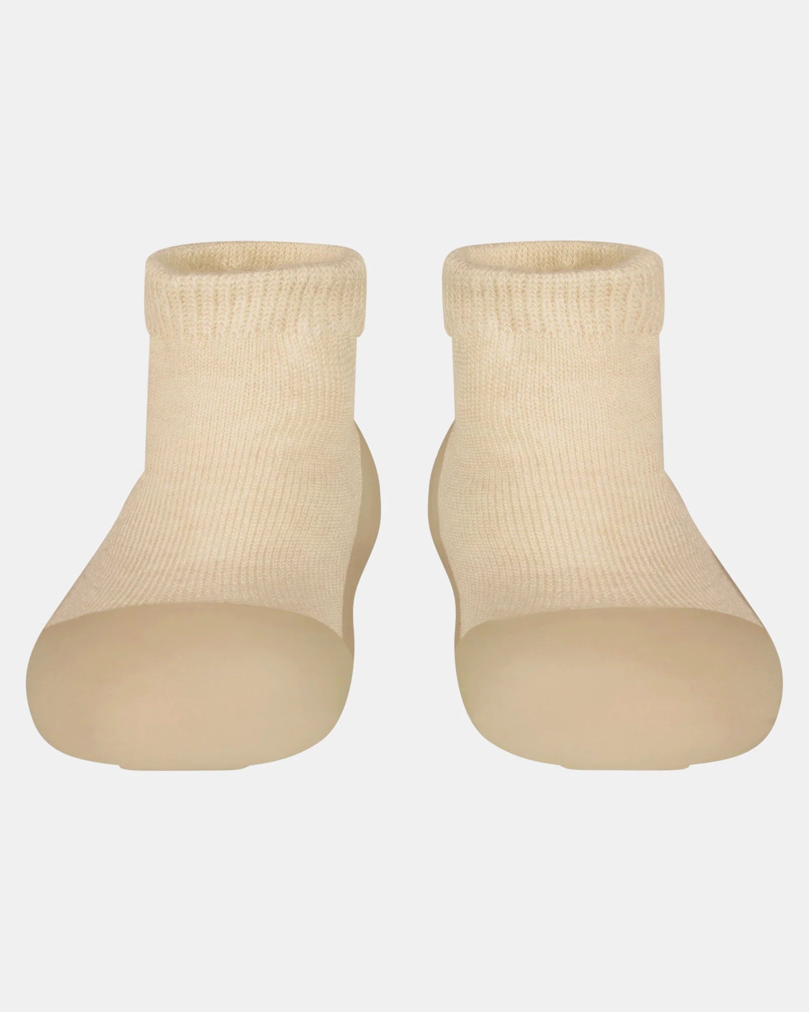 Toshi Organic Hybrid Walking Socks are ergonomically designed for life’s first steps. Toshi fusion shoe-socks feature an inner sock crafted from the finest quality organic cotton yarn. The organic cotton is soft and gentle on delicate feet, as well as our precious environment. Rubber soles cushion each step, providing flexibility, balance and stability. Baby safety is supported with a skid resistant rubber sole grip. Toshi Hybrid Walking Socks are designed for ease of slipping on and off. Carefully crafted with a knit cuff, Toshi Hybrid Walking Socks stay on comfortably while providing a snug fit. Adorn your baby’s feet with a sophisticated colour palette, refined design and intelligent functionality.