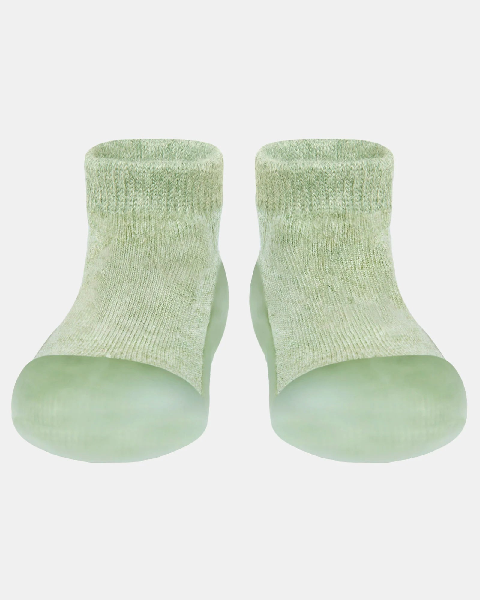 Toshi Organic Hybrid Walking Socks are ergonomically designed for life’s first steps. Toshi fusion shoe-socks feature an inner sock crafted from the finest quality organic cotton yarn. The organic cotton is soft and gentle on delicate feet, as well as our precious environment. Rubber soles cushion each step, providing flexibility, balance and stability. Baby safety is supported with a skid resistant rubber sole grip. Toshi Hybrid Walking Socks are designed for ease of slipping on and off. Carefully crafted with a knit cuff, Toshi Hybrid Walking Socks stay on comfortably while providing a snug fit. Adorn your baby’s feet with a sophisticated colour palette, refined design and intelligent functionality.